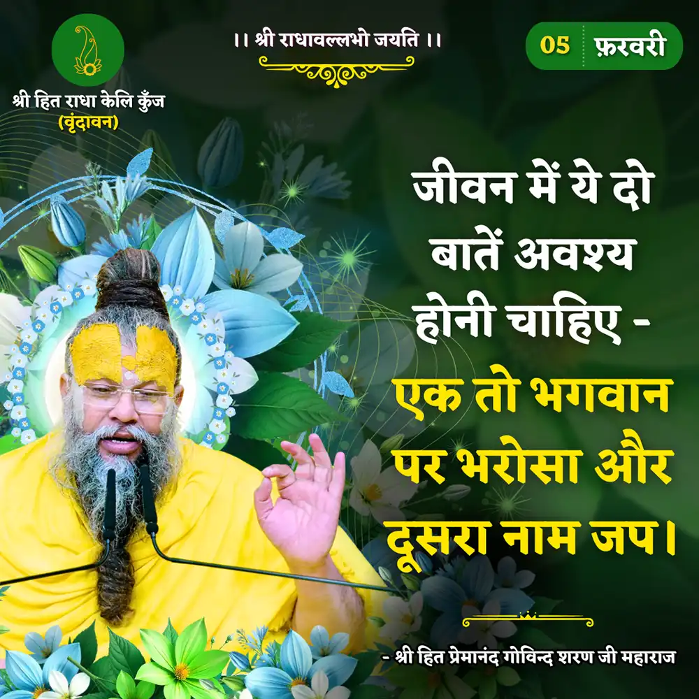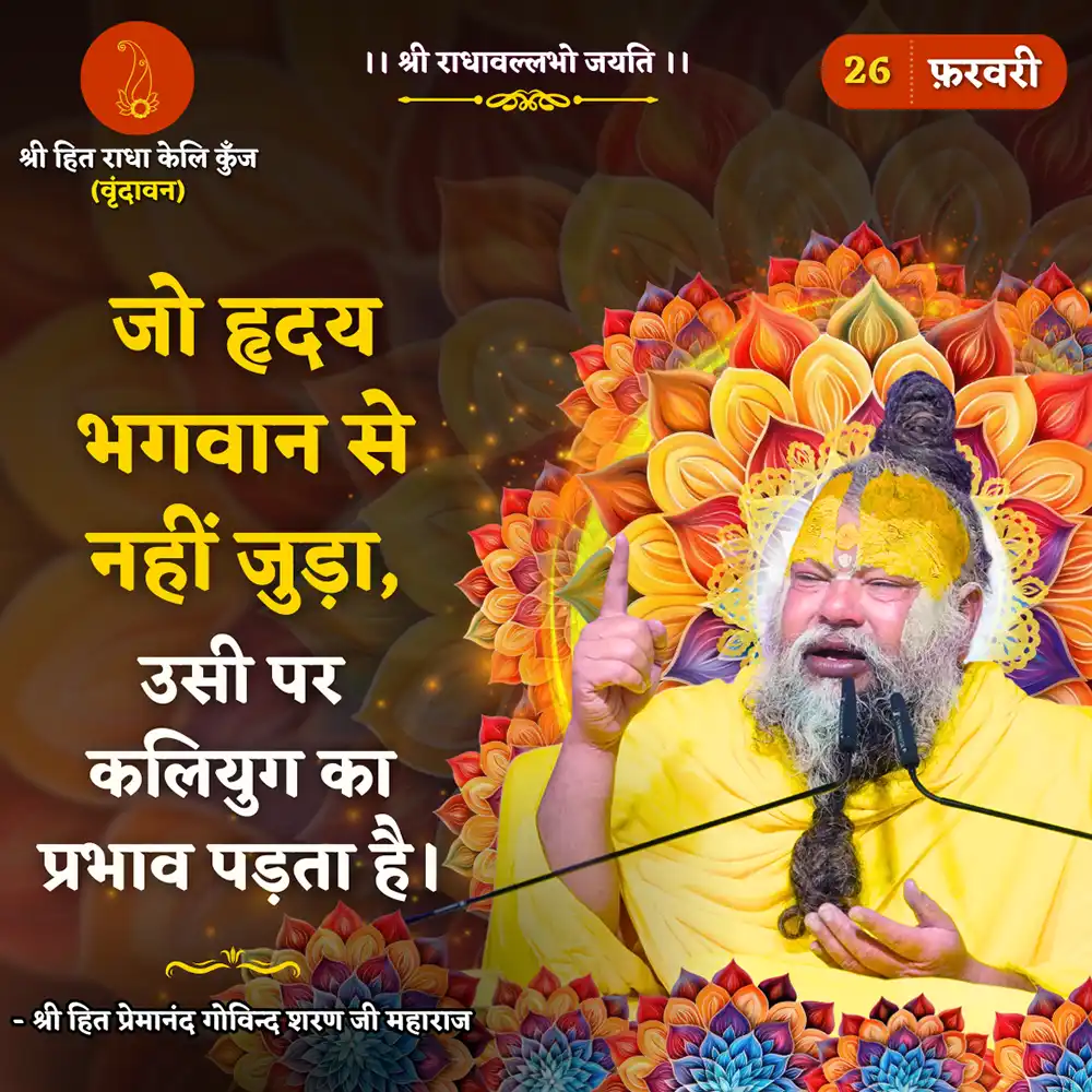 Pujya Shri Hit Premanand Govind Sharan Maharaj is a Rasik Saint from Vrindavan. He epitomizes the “Sahchari Bhav” or “Sakhi Bhav” initiated by Anant Shri Vibhushit, Vanshi Avtar, Paratpar Prem Swaroop – Shri Hit Harivansh Mahaprabhu.