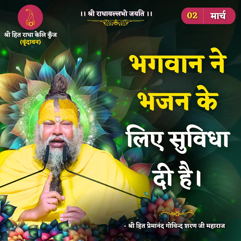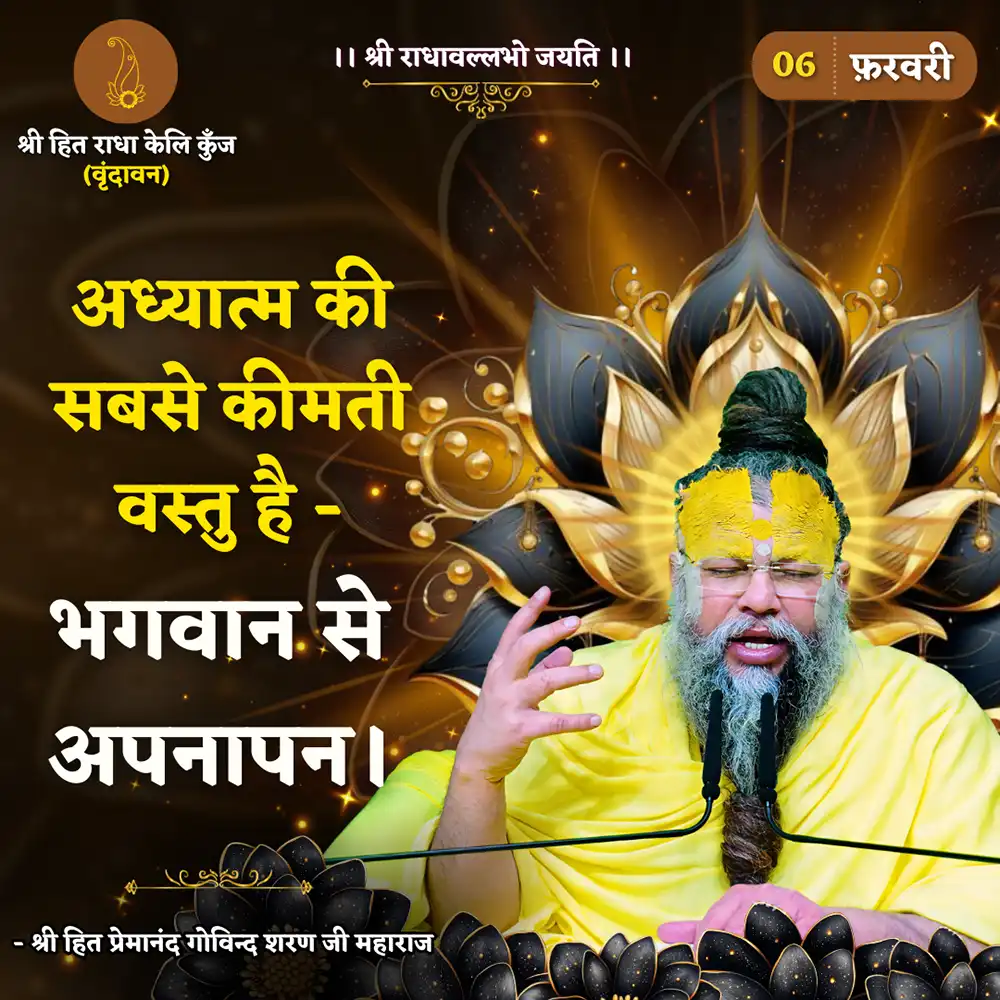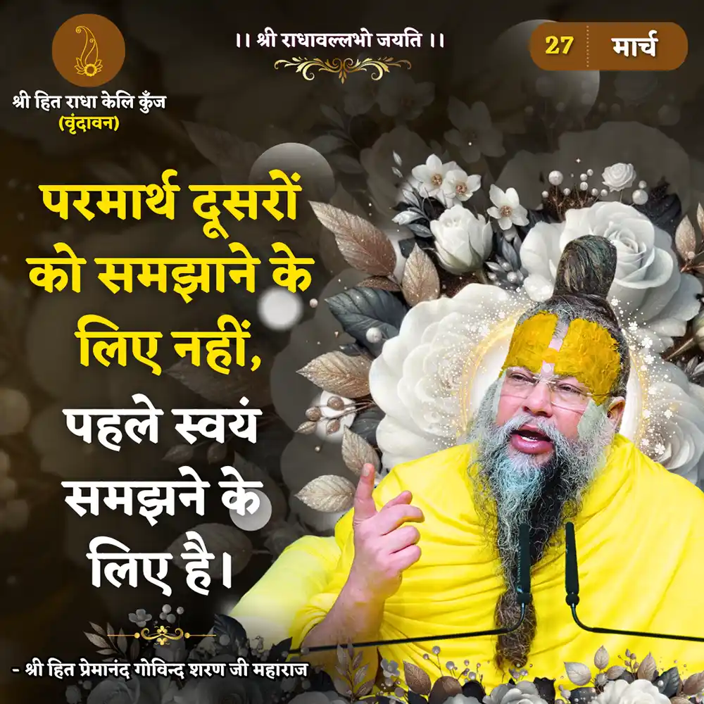 Genuine spiritual guidance has become exceedingly rare in present time. However even in these days and this age, Pujya Maharaj Ji is relentlessly simplifying key spiritual concepts and making it palatable for the common man. Not only is He providing aspirants, a solid foundation but also is one of the few Rasik Saints who is graciously bestowing the most confidential and supremely sacred ‘Vrindavan Nivrit Nikunj Upasana’ and ‘Nitya Vihar Ras’ which was first shared by Prem Swaroop, Vanshi Avtar Shri Hit Harivansh Mahaprabhu.